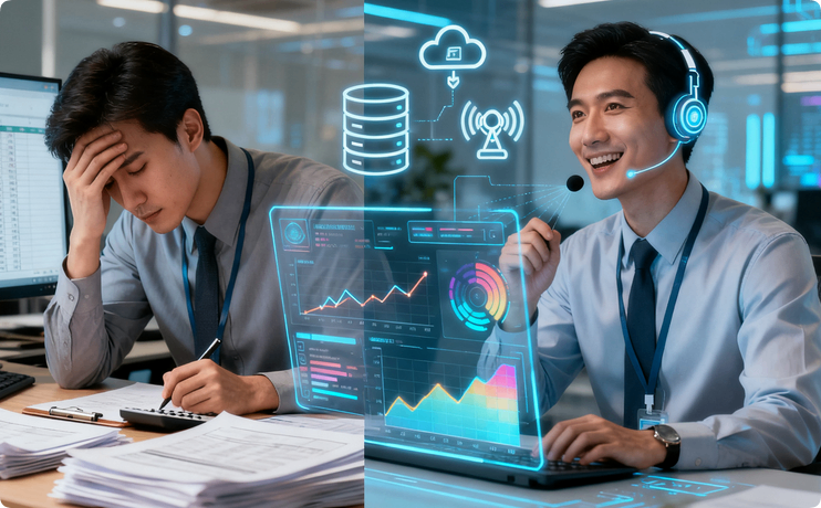 介绍企业服务行业在数字化浪潮下面临的挑战,引出 AI 数据分析作为解决方案的重要性,强调其对企业决策和竞争力提升的关键作用